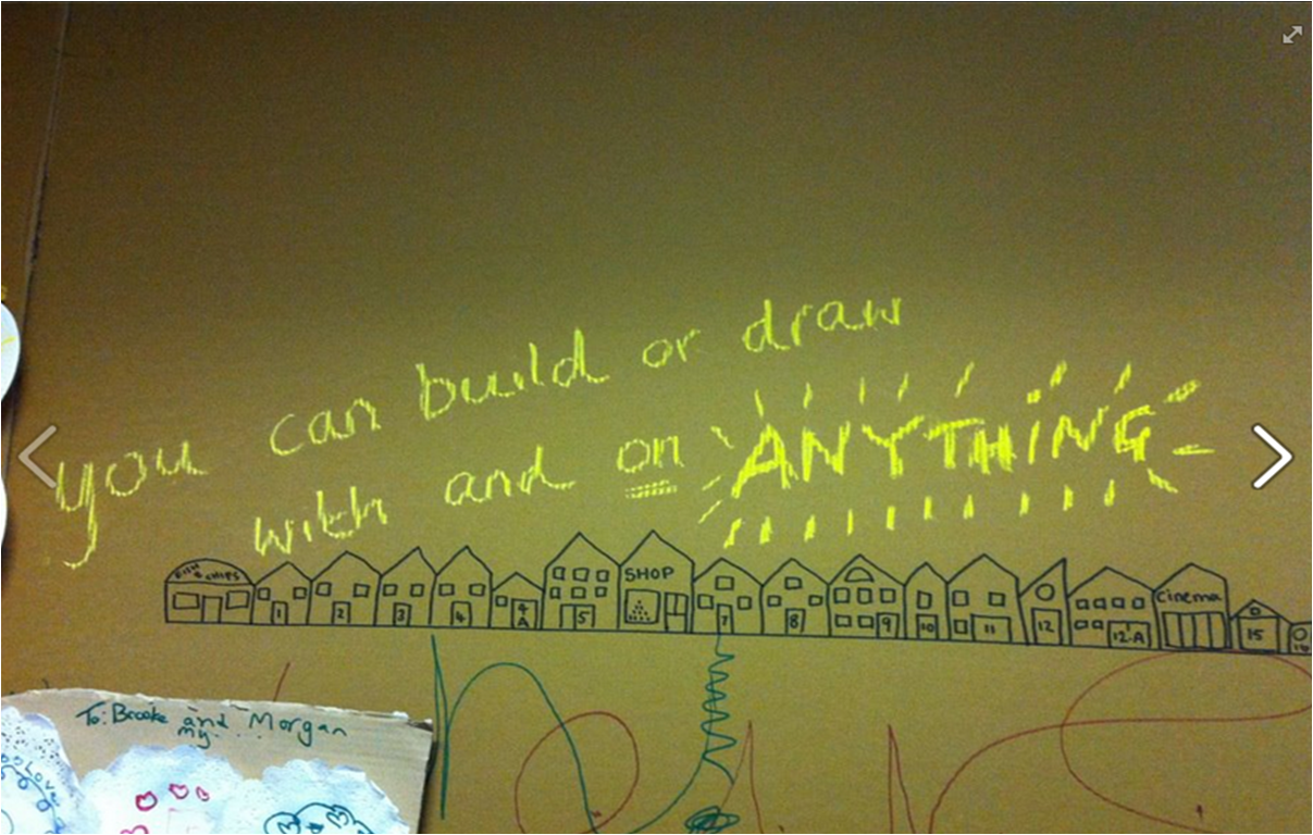 - Harness children’s ability to think and make big (don’t make them colour in boring A4 colouring sheets when you could have them drawing on the walls)