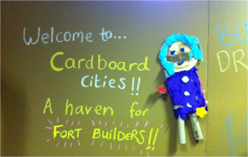 Cardboard Cities was created by artists Caragh O’Donnell and Ryan O’Reilly. The event revisits an exhibition which was created for the 2010 Belfast Children’s Festival by Caragh O’Donnell with Sinead Breathnach Cashell.